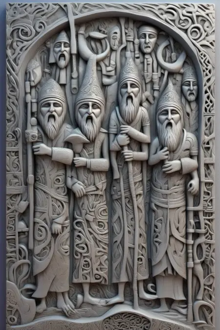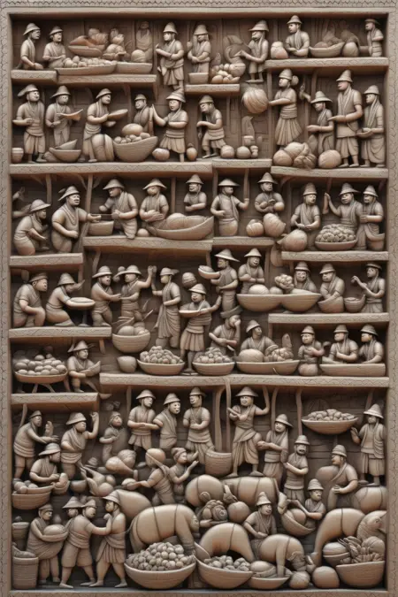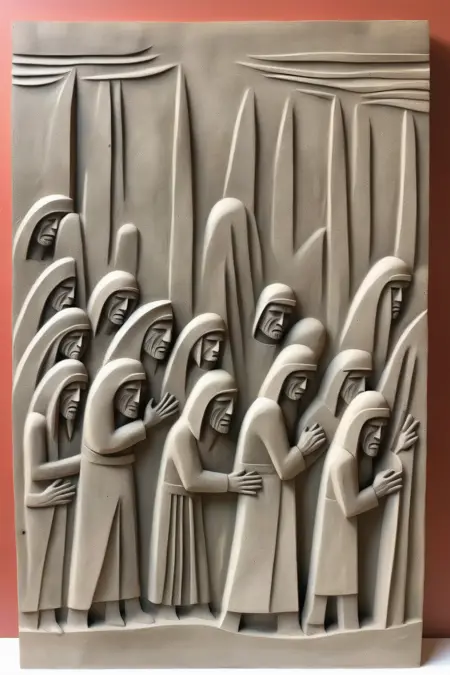 The process of creating a bas-relief sculpture involves first preparing a flat surface, such as stone, wood, or metal. The sculptor then carves or molds the figures and forms, carefully considering the perspective, proportion, and composition. The background is typically left smooth or with minimal ornamentation, allowing the sculpted elements to stand out.
