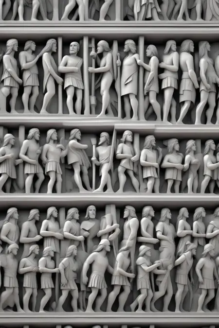 In bas-relief, the sculpted figures and elements are typically less than half their actual depth compared to the background surface. This creates a sense of depth and dimensionality, but the overall relief remains relatively shallow.