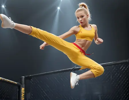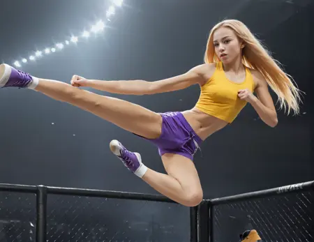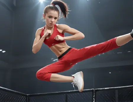 jusiki, <侧面视角>, <人物> 执行跳跃侧踢 ...