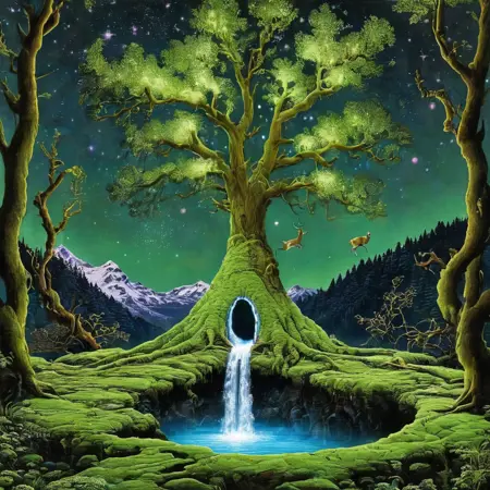 触发词 = "HuemanAboreal2, Green Nature Night Photography Art"