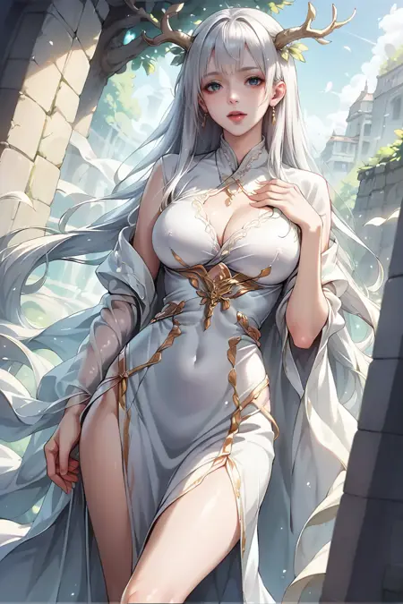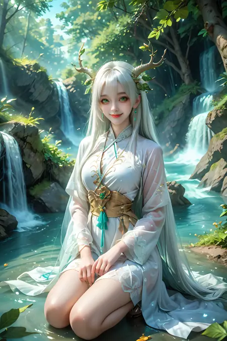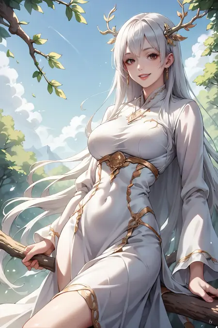 虚天神藤《完美世界》及其衍生作品中的角色。化身为白衣仙女,身穿一袭白色长裙,系着金黄色的腰带,一头银色长发自然垂落,脑袋上长着绿色藤蔓,背后悬浮着巨大的藤蔓