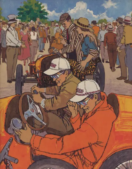以 bob-peak 风格绘制的坐在桌子旁拿着相机的男人插图