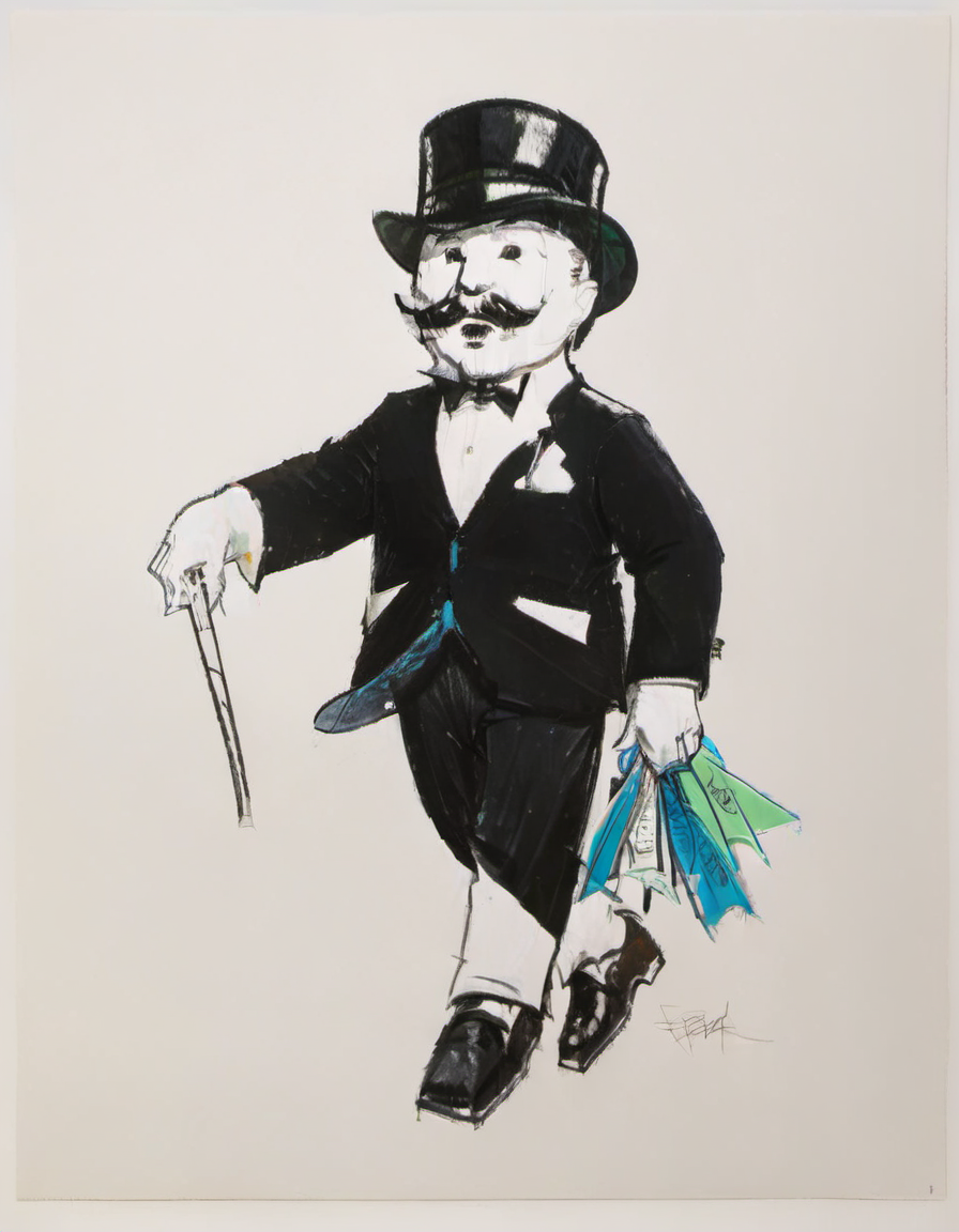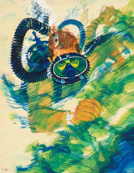 以 bob-peak 风格绘制的头部有水的男人笔触插图