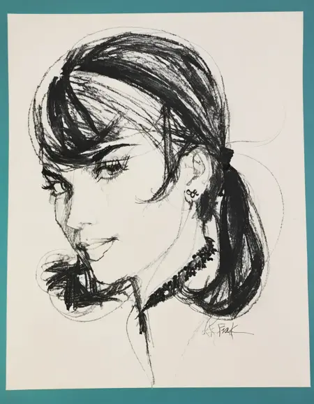 以 bob-peak 风格绘制的涂着红唇的女人笔触插图