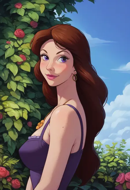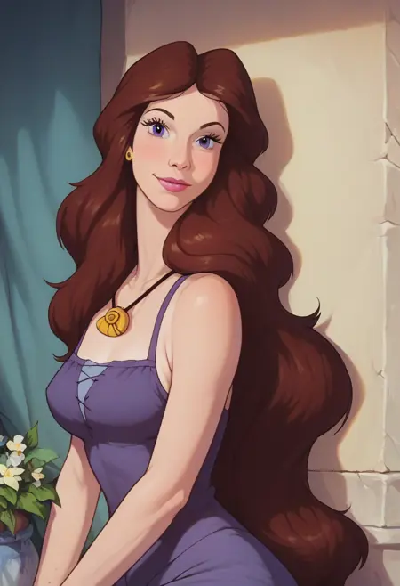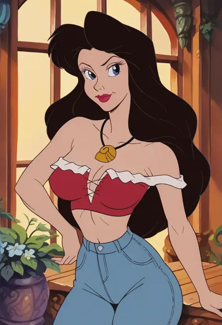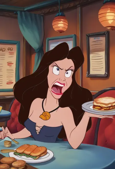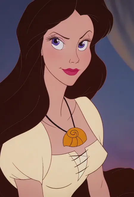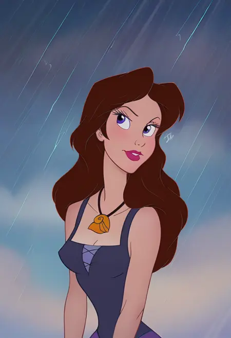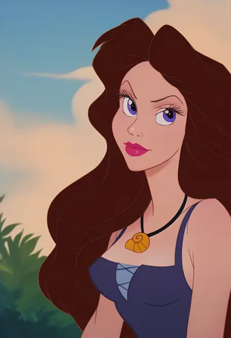 Pony version of my lora trained on the human disguise Ursula uses in the Little Mermaid. The lora was trained with the same dataset (images in the animation style of the movie). All movie outfits have been trained (white dress, purple dress, wedding dress) and seem to work with little prompting.