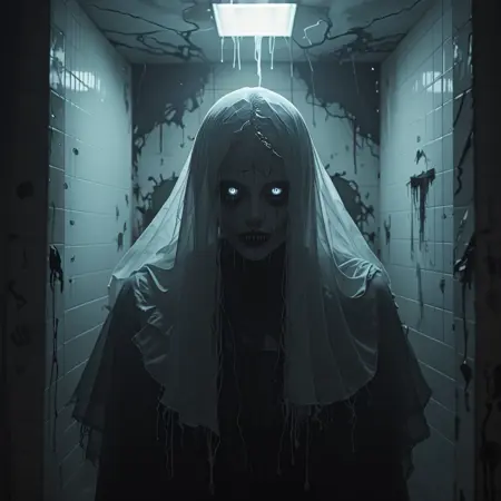 a cinematic shot of a female (ghost spirit:1.3), crying, see through, ectoplasma, sitting on a stone bench in an old Church, crying, hkhorror, masterpiece, best quality, highly detailed, sharp focus, dynamic lightingネガティブプロンプト: