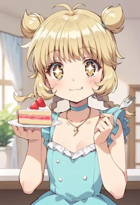 fong pudding, blonde hair, brown hair, short hair, hair flaps, twintails, twin braids, two side up, brown eyes, yellow eyes, eyebrows visible through hair, eyelashesCasual clothes pattern 1 私服その1