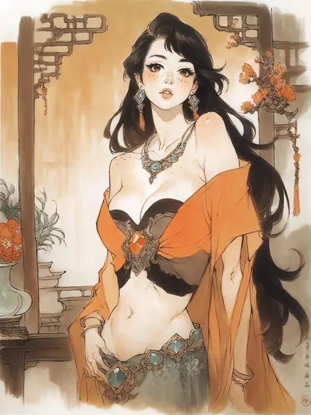3/ 如果想减弱封面风格,请启用负面关键词:chinese traditional painting,你将得到另一种风格,那是一个不同的LoRA。
