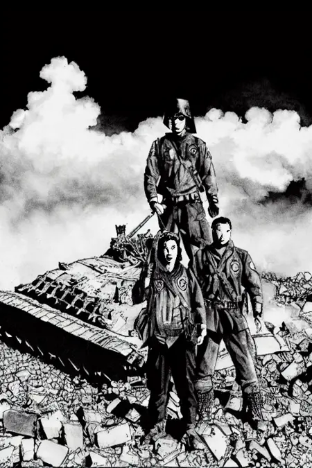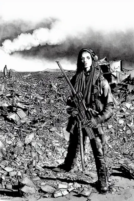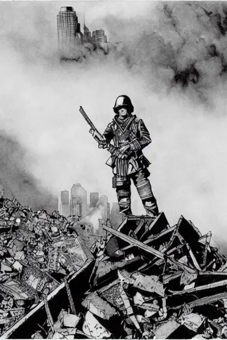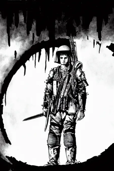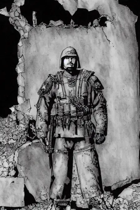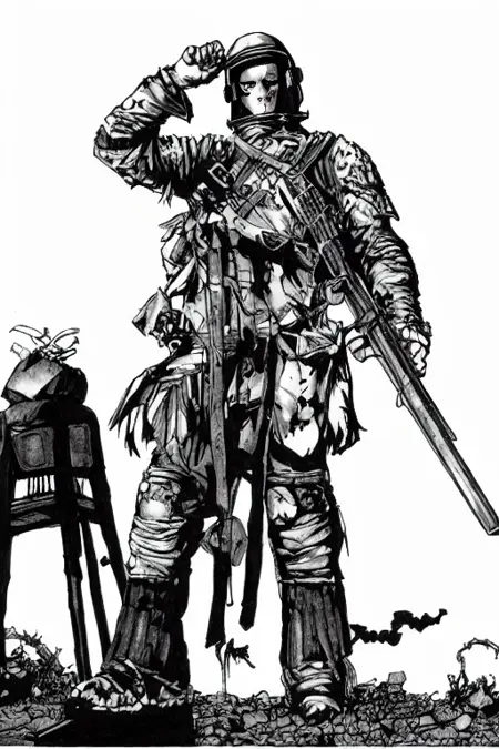 It's the Apocalypse; everything ended but wait, there are still some heroes and villains in what remains of the world and their story is just about to begin as everybody else's has ended, that's the subject of this art style. This model is trained on RPG illustrations featuring pencil shading and ink outlines. It's the typical drawing style used in less stylised illustrations of the late 1990s and early 2000's which were employed by medium budget RPG's.