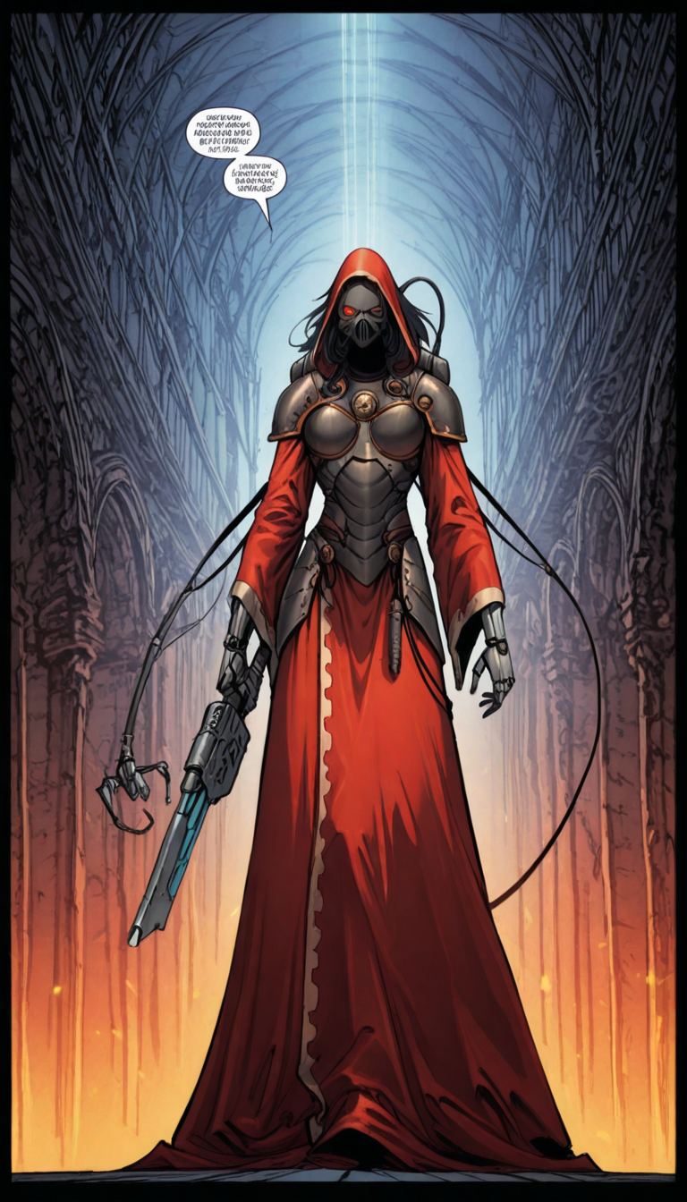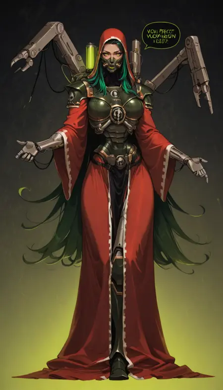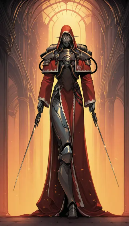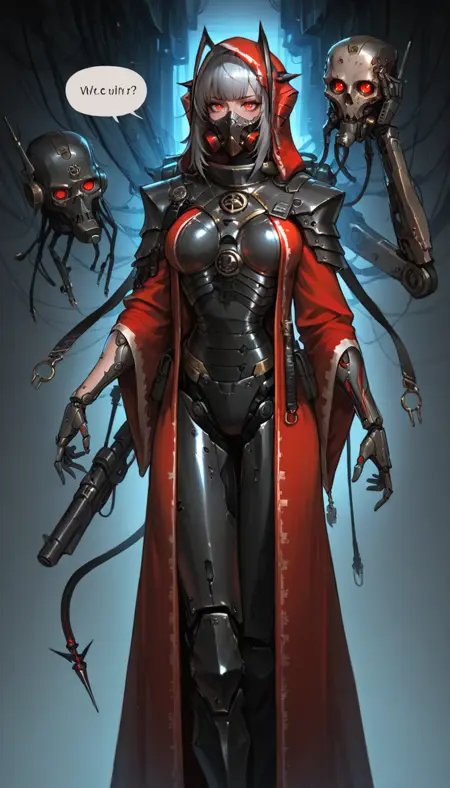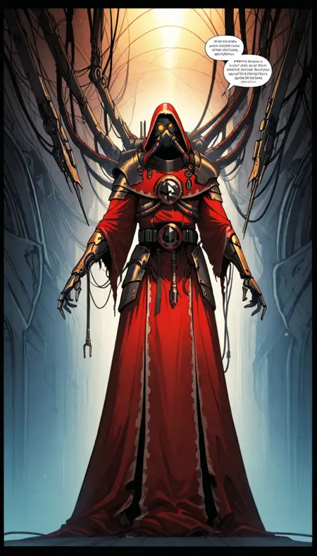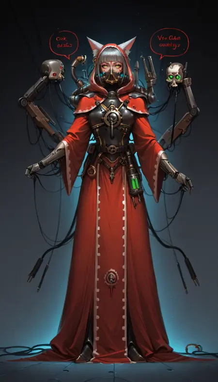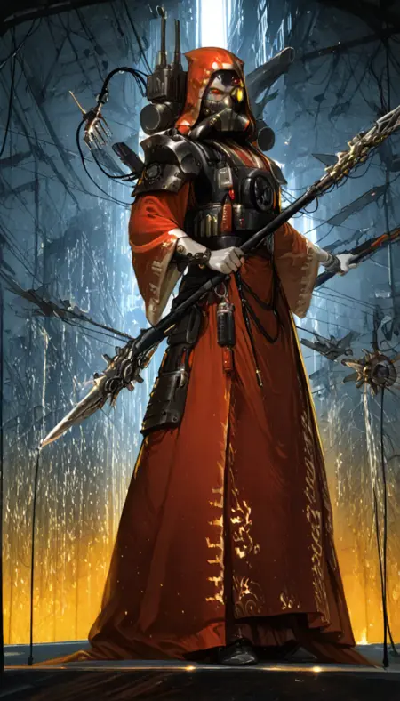 适用于辉煌风格:mhanicus,adeptus mechanicus, 红袍, 技术神甫, 机械关节, 披风, 武器, 机器人, 护甲, 面具, 长袍, 电缆, 机械臂, 科幻,