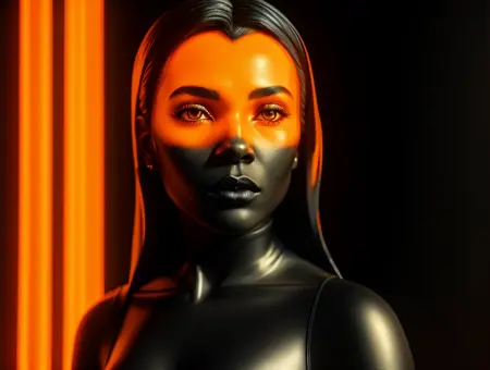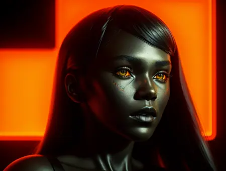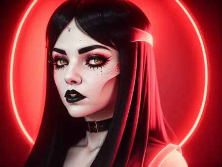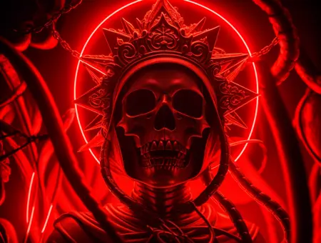 建议输入以下标记:雕像,黑暗,红色背景,超精细,霓虹灯,CGI,哥特风格,发光,地下世界,发光的数字符文,复杂细节,原始质感,HDR,专业摄影,琥珀与混沌,8K细节,金色黑色,故障核心。