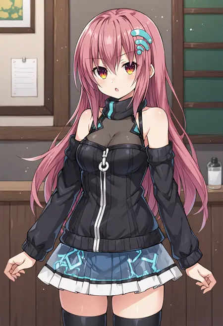 MahoNeptunia, black scrunchie, hair ornament, wi-fi symbol