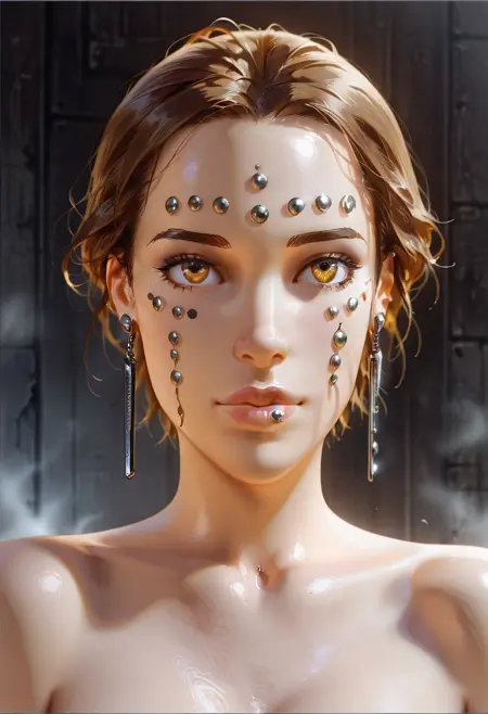 ピアスやタトゥーが不適切な場所に表示されないようにしたい場合は、対応するタグをネガティブプロンプトに追加してください。