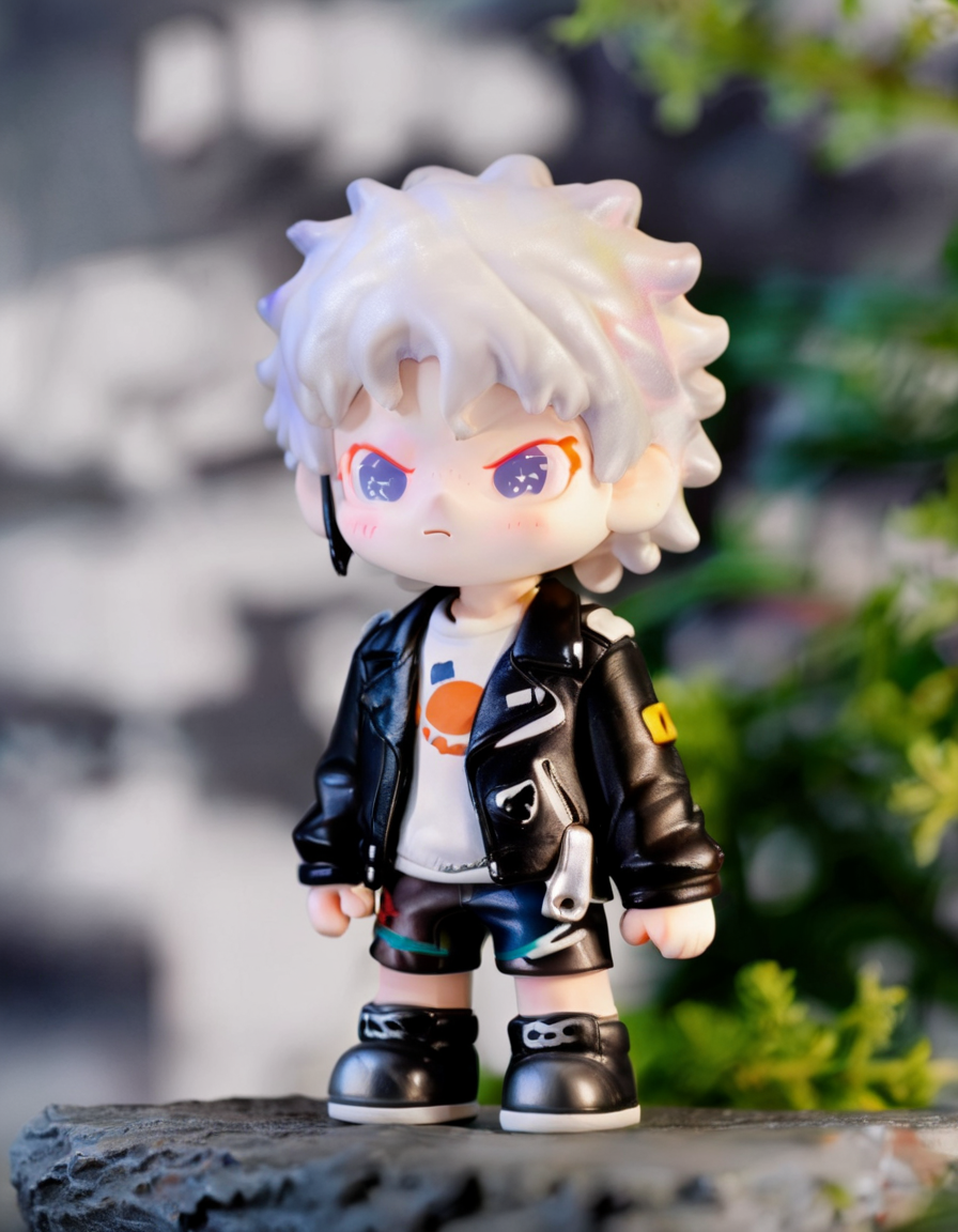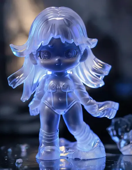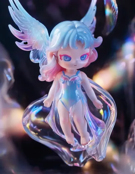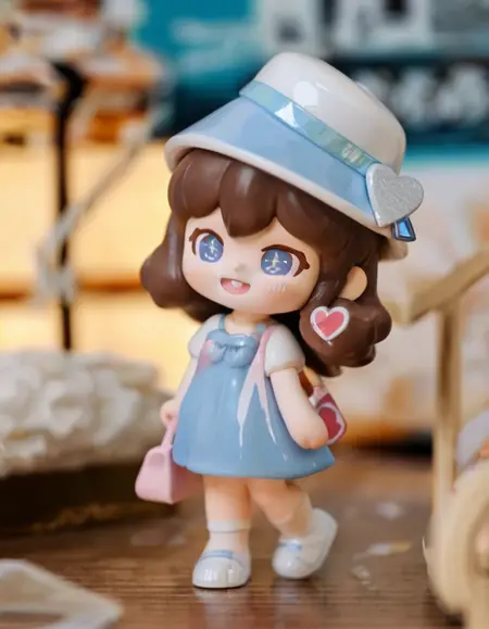 Prompt: popmart, blindbox, 1girl,light bule background,big eyes,shining eyes