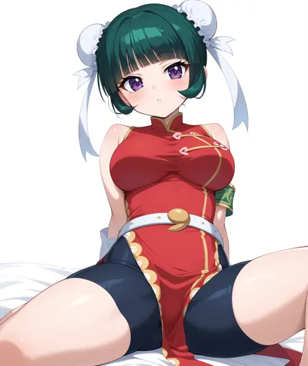 手袋、赤いドレス、ドレス、肩出し、太もも、ノースリーブ、ベルト、白い手袋、指なし手袋、中国風服、自転車用ショートパンツ、アームバンド、中国ドレス、肌にぴったり、きつく張った服、濃い肌色