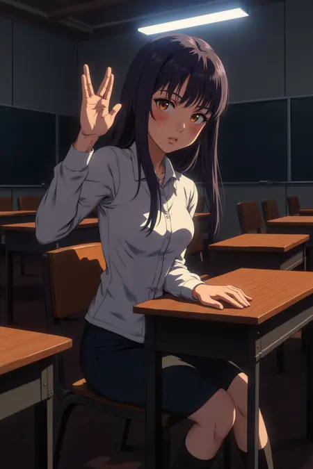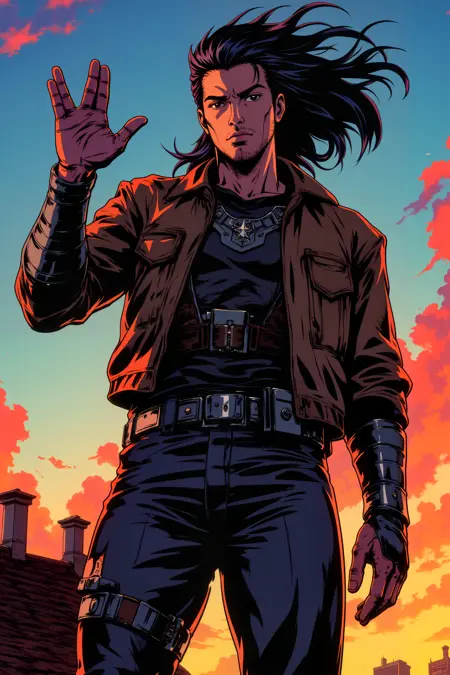 触发词为 "vulcansalute hand gesture"。如果你想获得举手效果,最好添加 "hand up"。