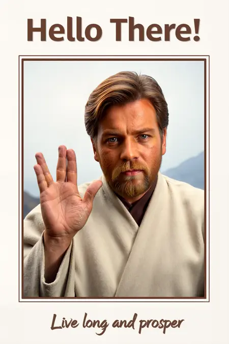 增加了 Flux 版本。最长的触发短语 "a v-shaped vulcan salute hand gesture with fingers parted between the middle and ring finger and with extended thumb" 给我带来了最佳效果,同时将 LORA 强度设为 1.3 也有助于提升效果。