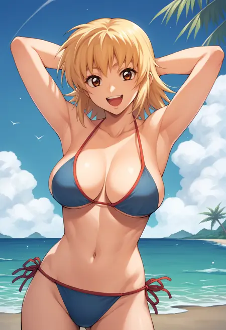 Basic prompts: 1girl, cagalli, blonde hair, short hair, brown eyes