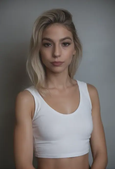 负向: anime, sketch, cartoon, drawing, (double teeth), (neutral background), (simple background), makeup, jewelry, tongue, cgi, plastic skin, unsharp, deformed eyes, deformed body, deformed face, two belly buttons, 6 fingers, extra fingers, deformed hand,