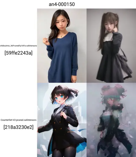 (An10,An9 was retrained an8 using the kohya-ss version of textualinversion, and two patterns of TI were merged using embedding merge: one that resulted in a more easynegative result and one that was closer to the model picture.)