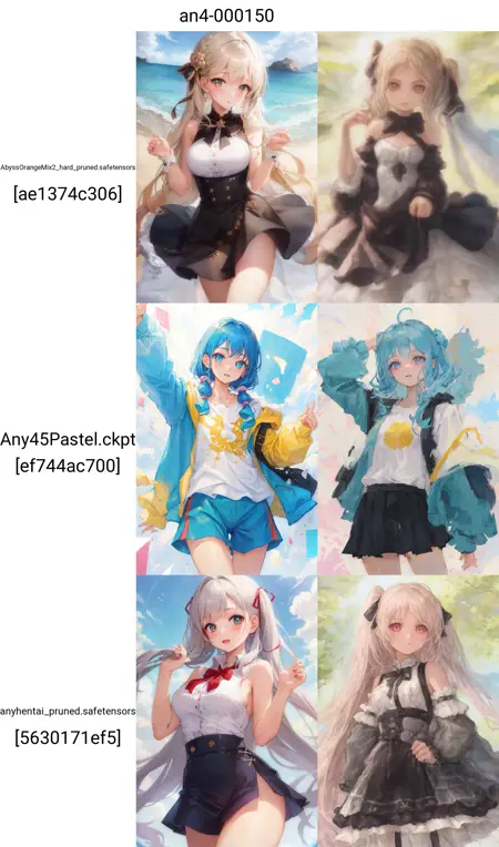 (An10、An9 是使用 kohya-ss 版本的文本反转(textual inversion)对 An8 重新训练,并将两种文本反转模式合并为嵌入:一种更接近 EasyNegative 效果,另一种更贴近模型原始图像风格。)
