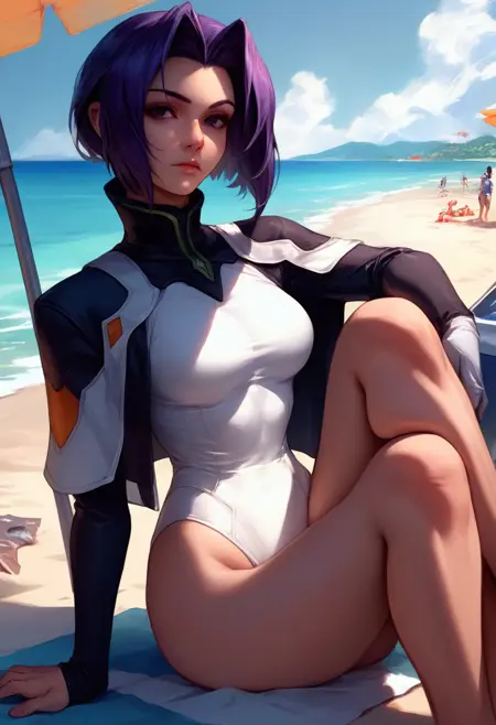 제노기어스의 미앙 하와가 기본 겔블러 복장을 입은 모습.