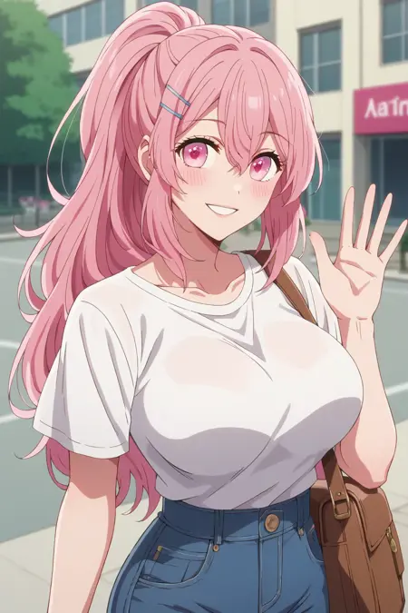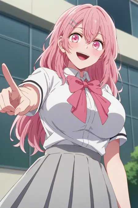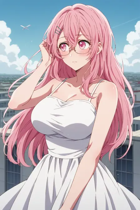 Triggers: KJOminami, long hair, pink hair, pink eyes, hair between eyes, hair pin,