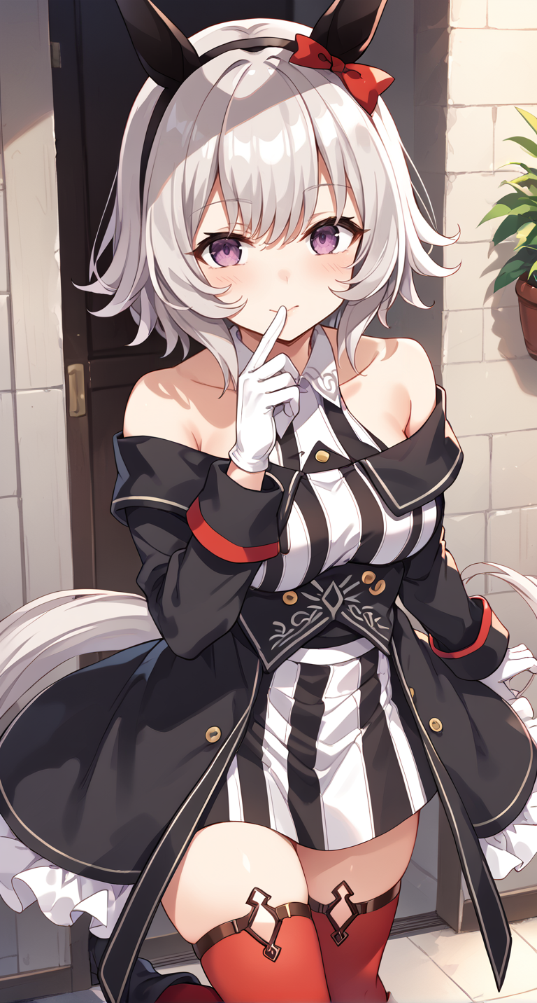 bow,ear covers, ear ornament, horse girl, official alternate costume,