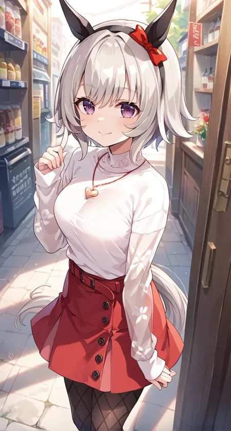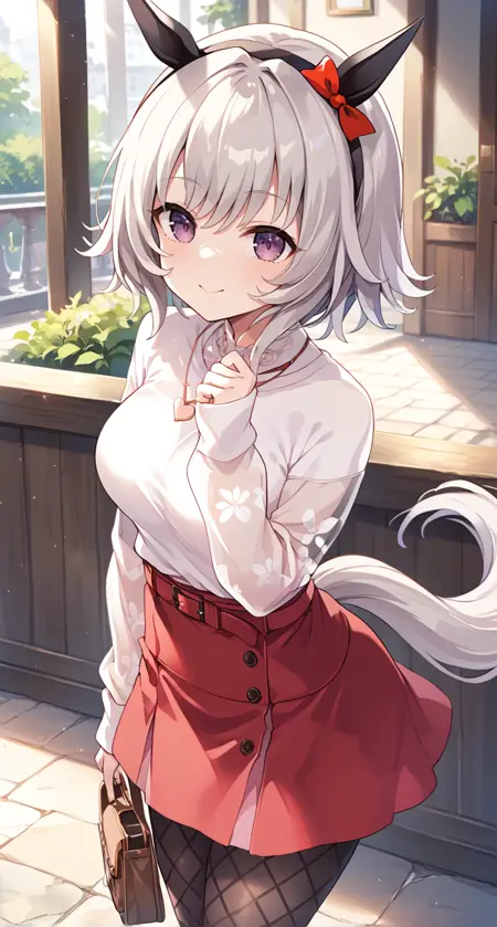 bow,ear covers, ear ornament, horse girl, official alternate costume,