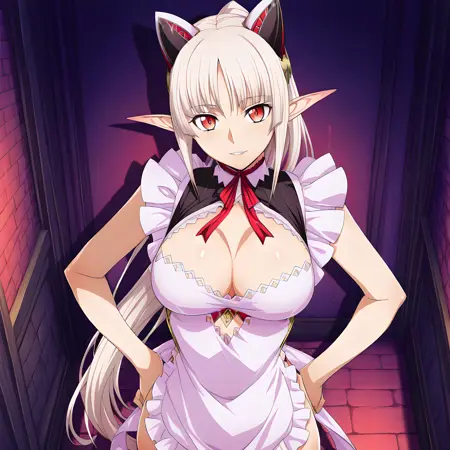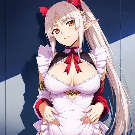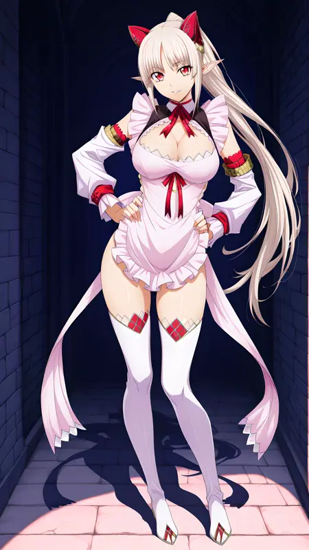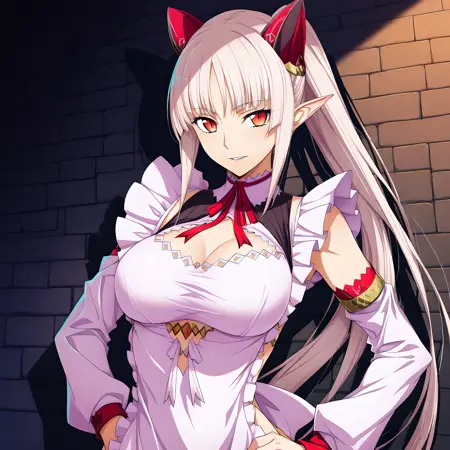 활성화 태그는 "aldra(qbr),"입니다. 외모는 "뾰족한 귀, 가슴, 허벅지까지 오는 양말, 허벅지 부츠, 팬티, 큰 가슴, 속옷, 빨간 눈, 앞치마, 긴 머리, 옆 매듭 팬티, 흰 머리, 포니테일"입니다.
