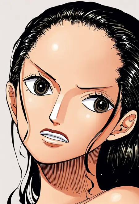 残念ながら、ニコ・ロビンが登場する高品質なパネルはほとんどなく、ほとんどの画像が顔のポートレイトや歪んだ角度のショットです。このLoRAには十分な安定性を期待しないでください。