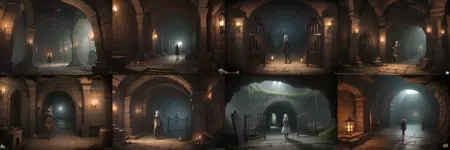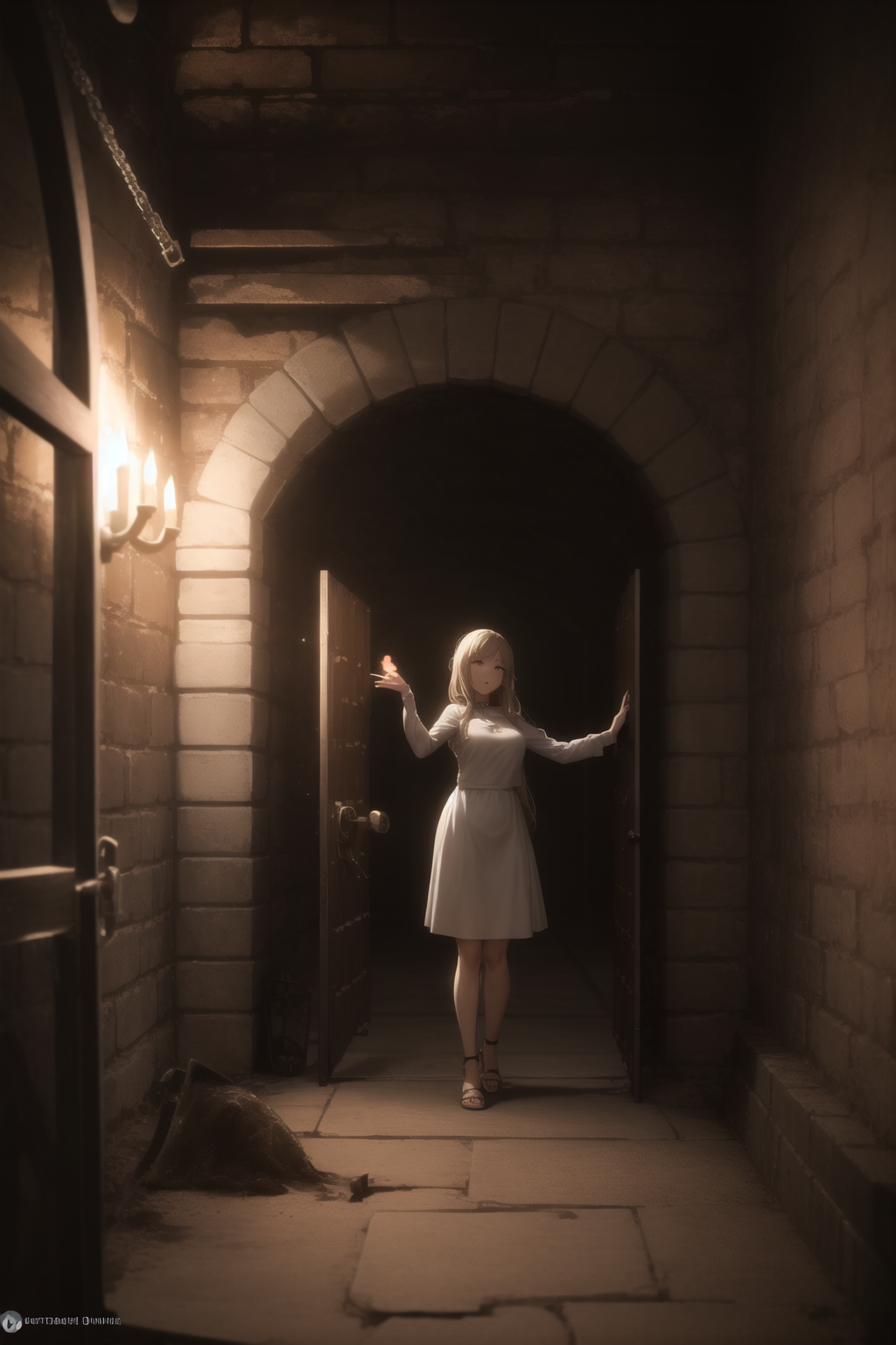 중량값 1.0 또는 그 이상을 사용하세요. 트리거 단어: dungeon. 원하는 결과물을 더 잘 표현하기 위해 다른 태그를 함께 입력하는 것을 추천합니다. 창의적으로 구성해도 좋지만, 몇 가지 제안은 다음과 같습니다: candle, torch, fire, dark, darkness, backlighting, shadow, stairs, hallway, room, cell 등. 다양한 종횡비를 사용하고, 구성과 캐릭터 배치를 구체적으로 설명해 주세요.