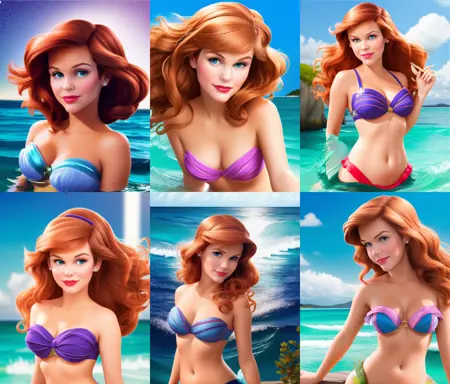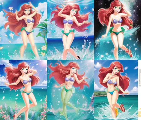 초기 테스트에서 걱정되었던 이유는 계속해서 그녀의 물고기 꼬리 부분을 렌더링하려고 할 것 같아서였습니다. 저는 그녀가 다리를 가진 이미지 하나만으로는 학습시키지 않았고, 단지 꼬리 부분만 가르쳤습니다. 프롬프트에 "전신", 음성에 "물고기여자"를 넣어보니 그녀는 다리를 가지게 되었어요! 위기 탈출!
