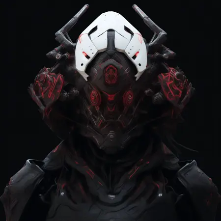 メカ、ロボット、アーマー、機械的な腕、SF、人物なし、侍、日本語の記号