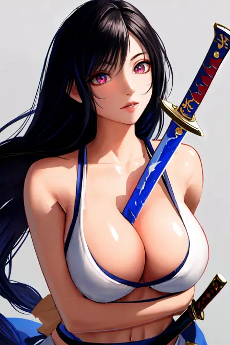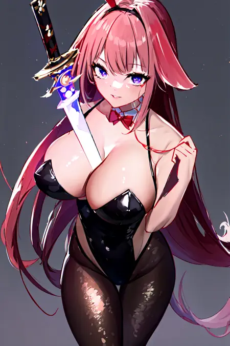 cleavage, sword, holding sword