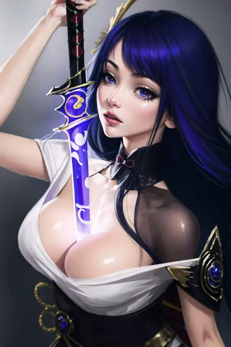 The Main triggerword is Booba Sword. I recommend using more weight on this like (Booba Sword:1.2). You can go higher, like (Booba Sword:1.7) and it will give most of the time ruined Style or will mimic the almighty Shogun. Adding electricity works pretty good.