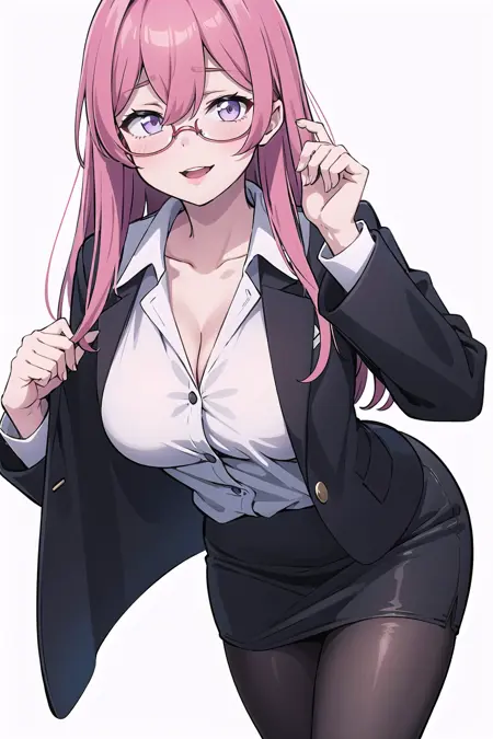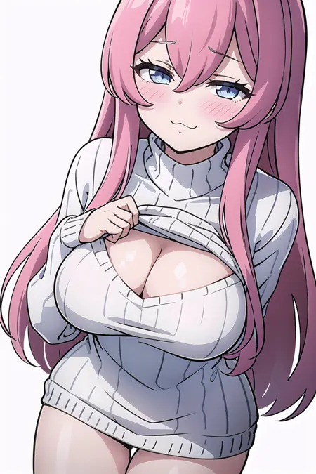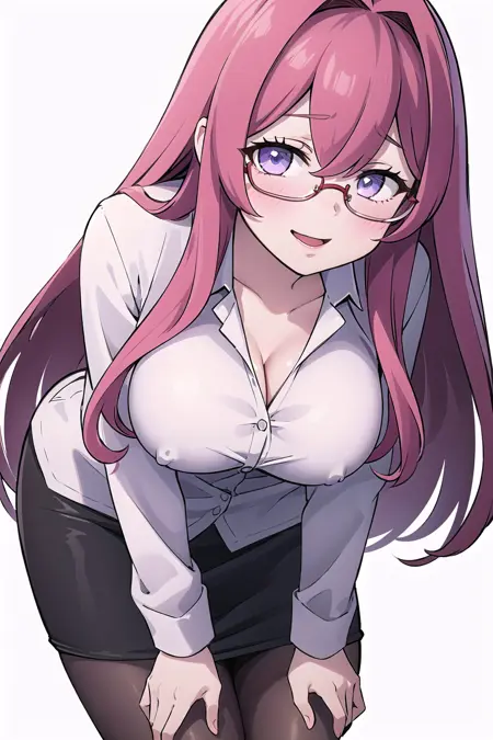 Tags: pink_hair, purple_eyes, hair_between_eyes, mole_under_mouth