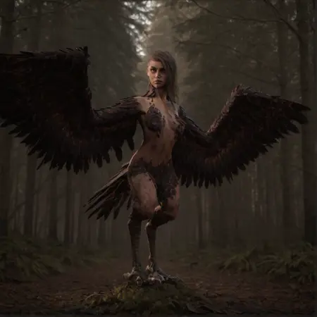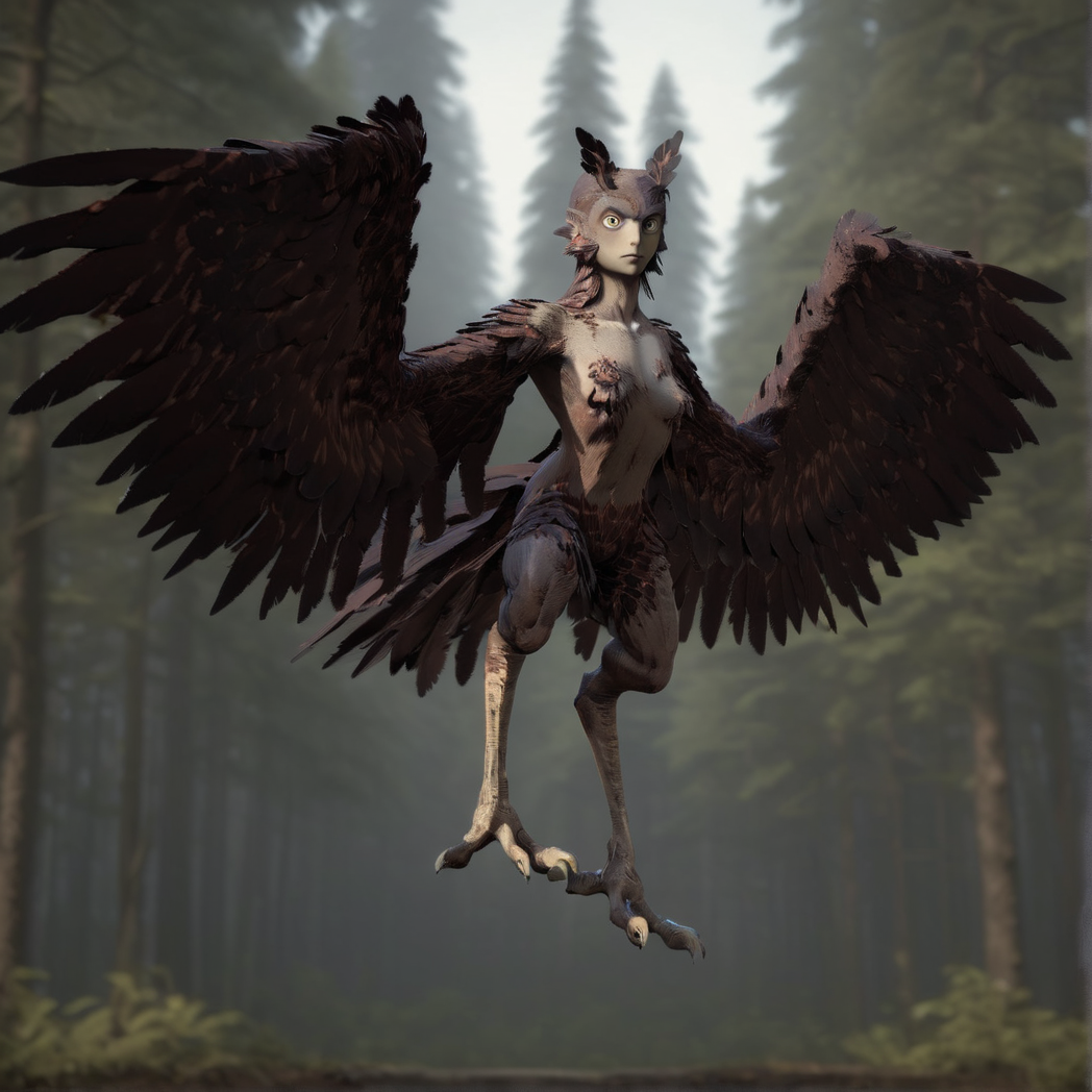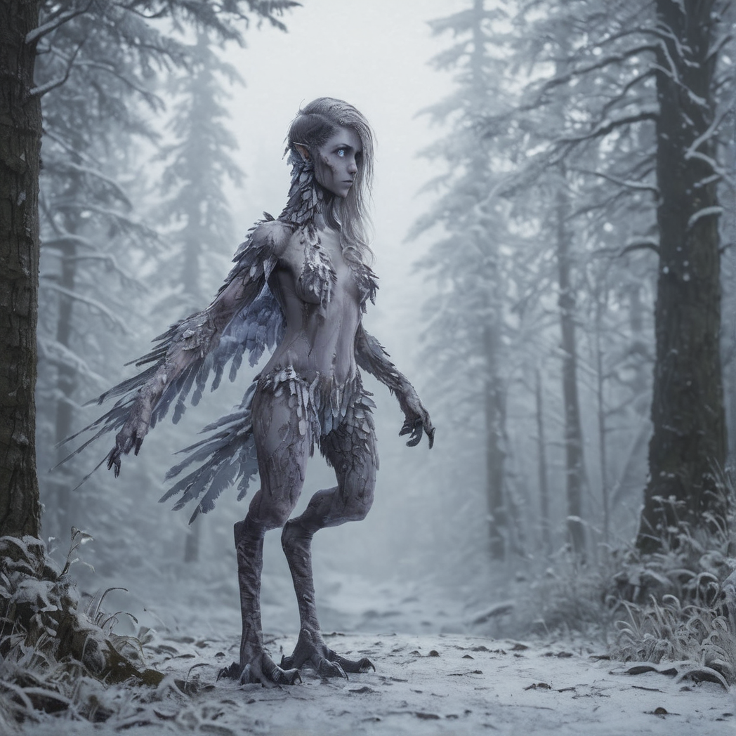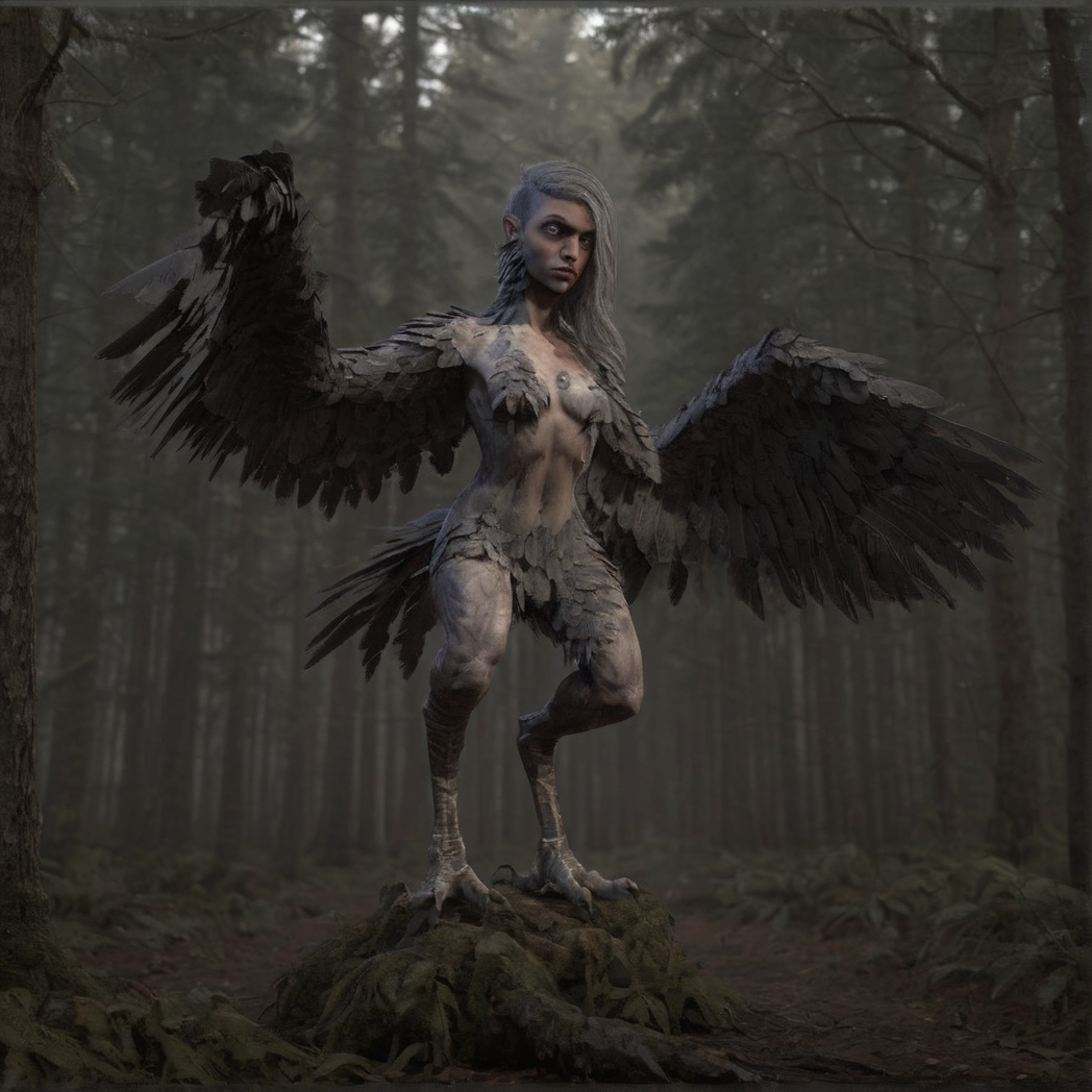 석하르피, 회색 피부, 날개 달린 팔, 회색 깃털,