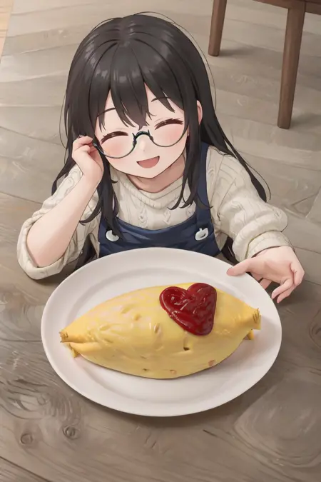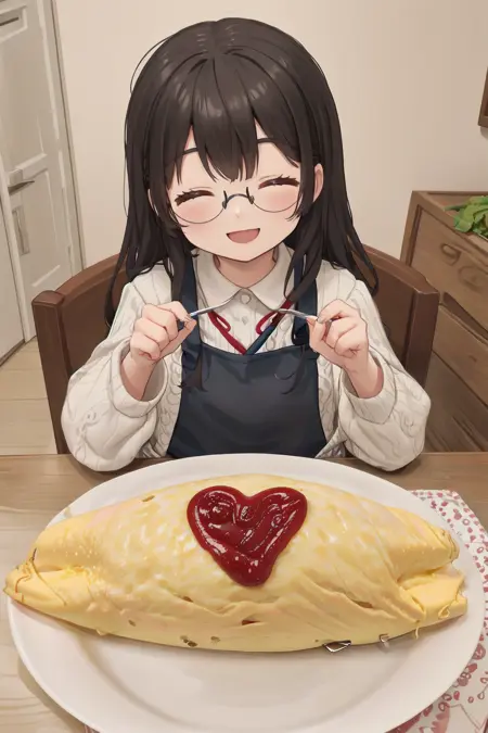 许多人或许都有过在蛋包饭上用番茄酱画出爱心形状或文字的经历。这款LoRA或许能帮助你画出如此充满爱意的蛋包饭。