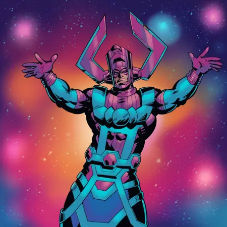 시간을 초월한 시대에 새로운 우주가 탄생할 것이며, 그 우주에는 이전에 없던 하나의 존재가 나타날 것이다 — 은하수와 맞먹는 끝없는 힘과 탐욕을 지닌 생물체. 그러나 그는 단지 은하수 이상이 될 것이다. 그는 은하수를 휩쓸어 버리는 파괴자일 것이다… 그는… 갈락투스!