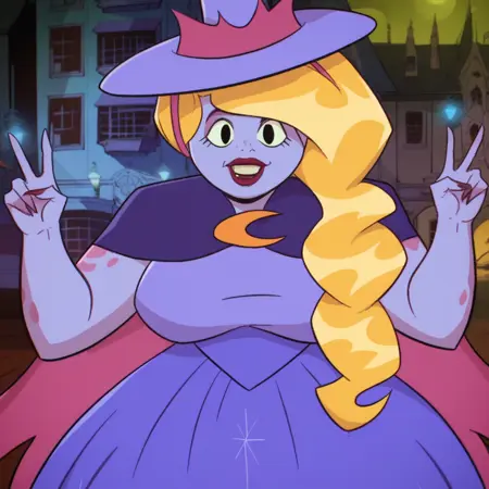 MAYORMIRA, 1girl, solo, blonde hair, long hair, black eyes, colored skin, blue skin, lipstick,