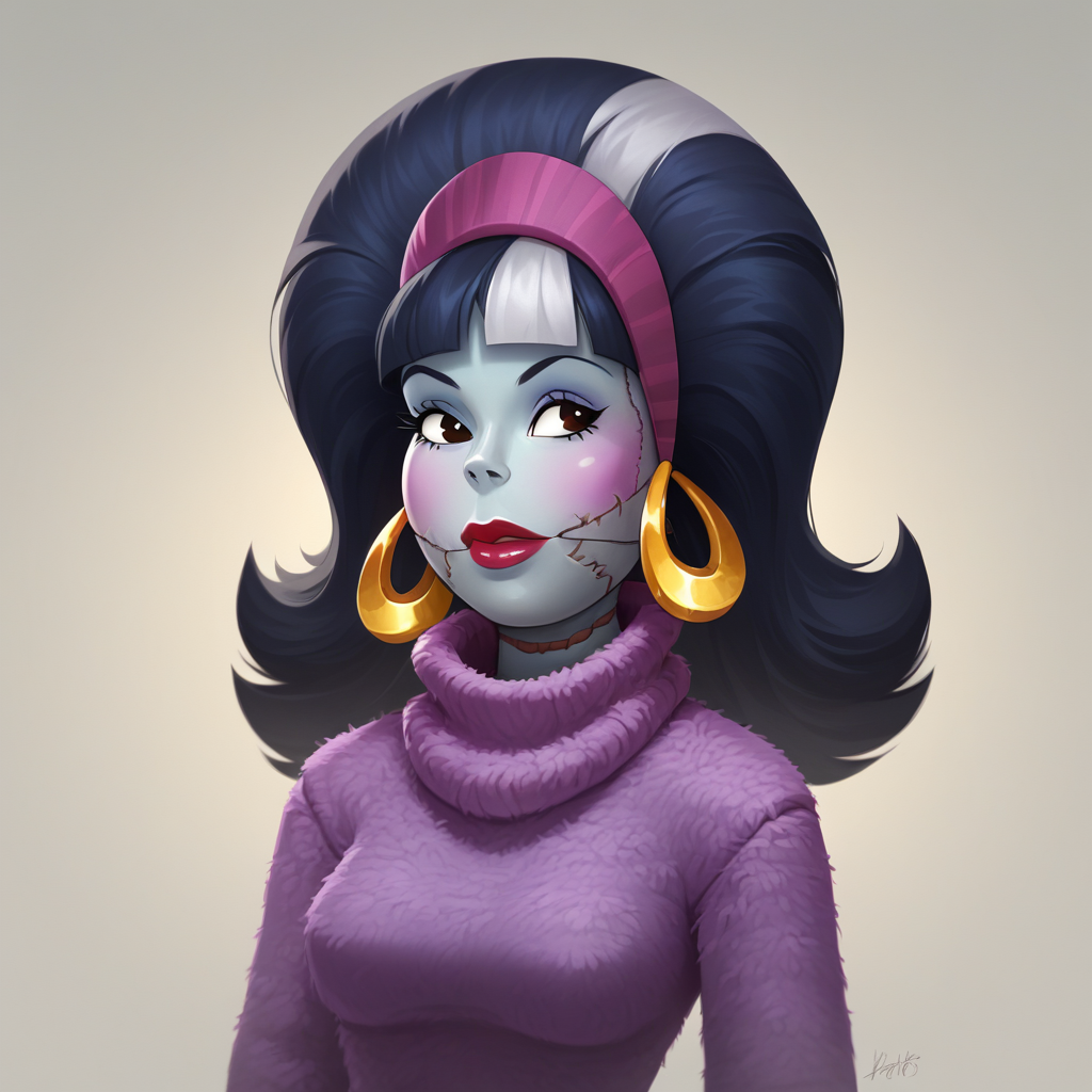 EUNICESTEIN, no humans, solo, long hair, colored skin, stitches, headband, earrings,