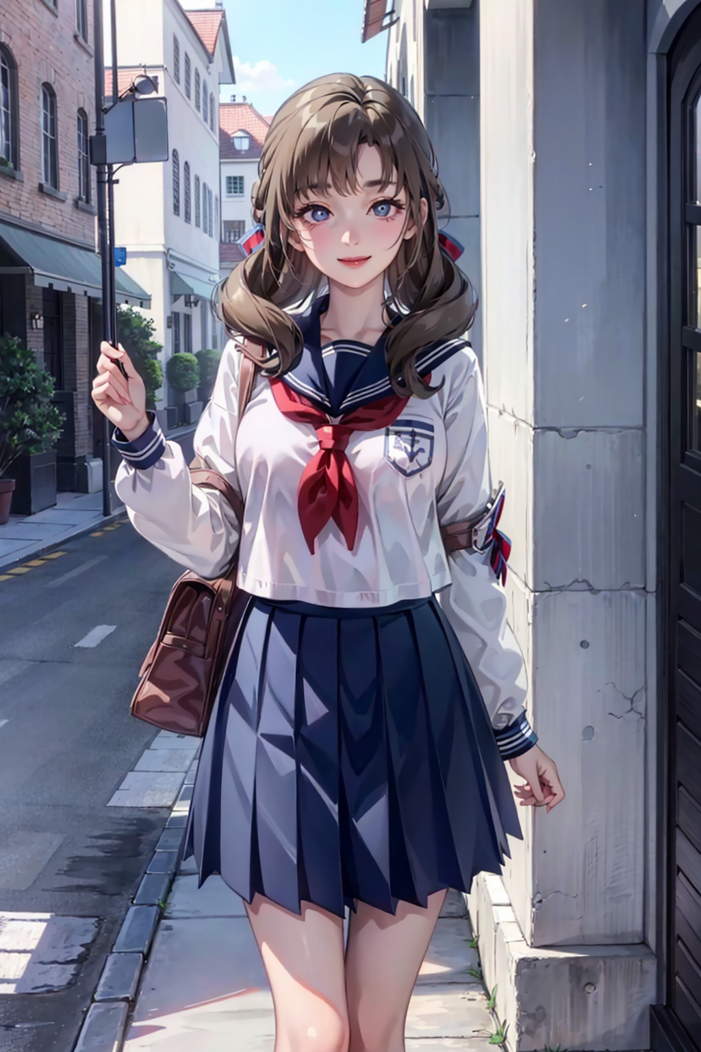 Mamako 制服2(Aserafuku)触发词:mamakosomakj,裙子,长袖,校服,百褶裙,Aserafuku,水手领,蓝裙子,红围巾,成熟女性