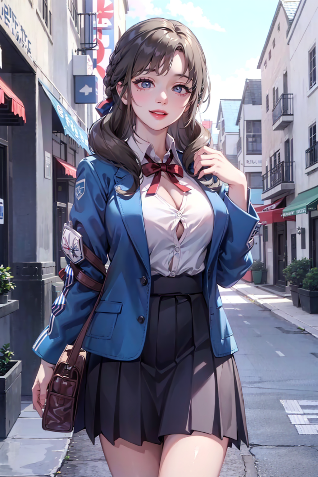 Mamako 制服1触发词:mamakosomakj,裙子,长袖,蝴蝶结,胸部轮廓,校服,夹克,白衬衫,百褶裙,迷你裙,内衣,敞开夹克,红丝带,西装外套,蓝夹克,灰裙子,扣子间隙,内衣若隐若现,成熟女性