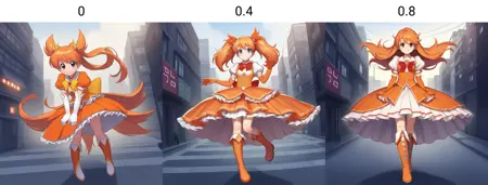 일반적인 프롬프트보다 마법소녀 복장을 더 일관되게 구현하는 LoRA입니다.