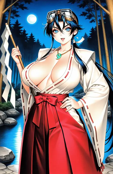 신녀로서 뛰어난 자질과 알 수 없는 강력한 법력을 지녔지만, 돈에 눈이 멀고 튀는 성격 때문에 수련을 핑계로 신사에서 쫓겨났습니다.