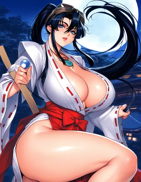 戦国ブレードより暴れん坊巫女の富樫こよりです 小夜ちゃんや春日舞織ちゃんや山神しのちゃんと並ぶぐらい大好きな爆乳の巫女さんキャラです!いちおう正義の味方です。守銭奴だけどなんかコミカルで憎めないんですよねこの子。バッドEDで偽物のお姫様を献上しちゃって「ごめんなさ~い!」って逃げたり逆にハッピーEDだとお姫様とくっついて百合展開になったりというかこのゲームが全体的にギャグ寄り。シリアスなのはハガネぐらいかも?にしてもこよりはこのボディで17歳とか凄いと思う。エロすぎる!