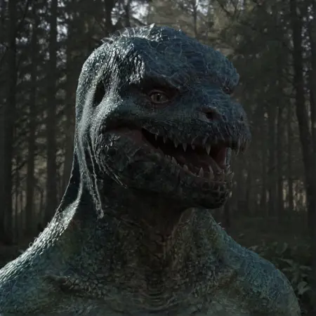 이구아나인을 "파충류, 도마뱀, 파란 피부, 치마바지, 갑옷, 방패, 검"을 사용하도록 만듭니다.