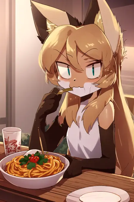 cartoon若你希望风格更扁平/简单。若想更细致、有阴影,可尝试添加负面提示。winking单边眨眼,像 o.<genki eyes/closed eyes/genki closed eyesGenki 眼睛,如 >.<。闭眼,如 -.-。Genki 闭眼也可使用。green sweater用于表现她画作中常见的绿色毛衣。chicken sandwich发现多数模型不会正确绘制鸡肉三明治(只会画成汉堡或切片面包三明治)。这属于过拟合,通常会画得非常大,需额外提示进行调整。big smile张嘴微笑。prone/down low身体低伏,类似趴着或偷偷摸摸的样子。ears drooping耳朵下垂/放低。运气成分较大。v/peace做出和平手势。