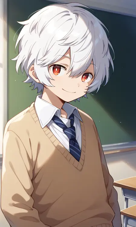 キーワード:ユマ・クガ、白髪、赤い目、眉間の髪、前髪